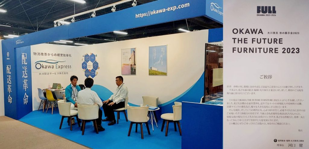 2024年10月16日・17日に開催されました「OKAWA The Future Furniture 2024」におきまして、大川配送サービス株式会社も専用ブースを出展させていただきました。当社は、大型家具やインテリア製品の配送を専門としており、全国規模の配送ネットワークを通じて、迅速かつ安全な物流サービスを提供いたしております。